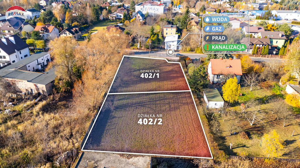- działkę 402/1 o powierzchni 1158 mkw. Szerokość: ok. 29 m,